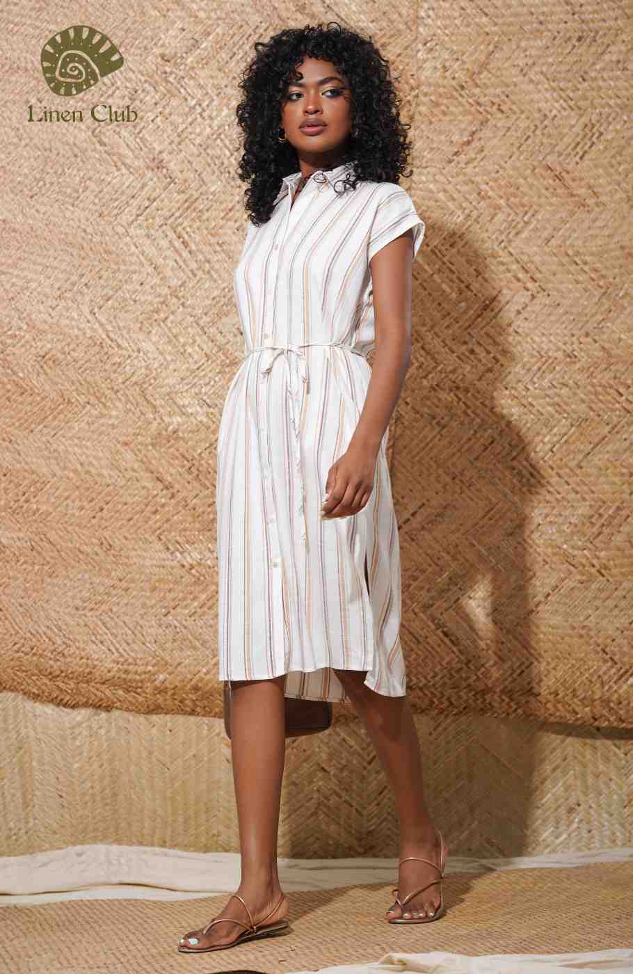 ALANA DRESS - BROWN STRIPES