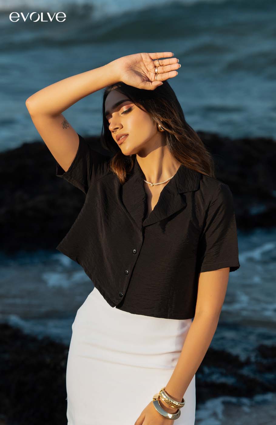 • Model stats: bust - 34 Inches, waist - 26 Inches, hips - 37 Inches