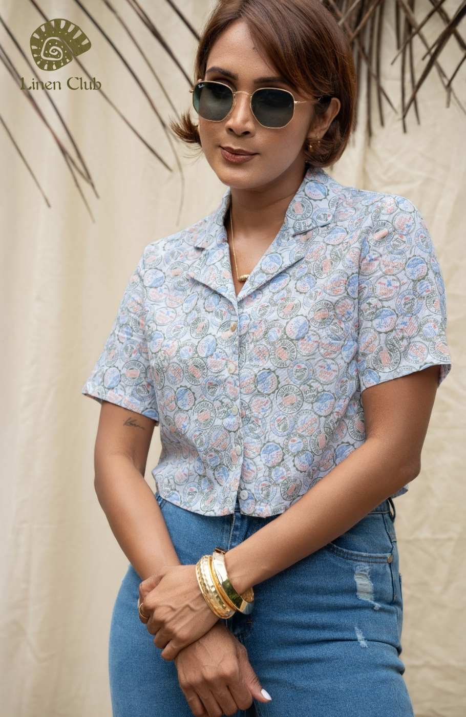 Your everyday wardrobe just isn't complete until it has the Evolve Easily Perfect camp collar neck , short Sleeve Button-Up cropped shirt! Airy Linen fabric shapes this breezy and versatile top.