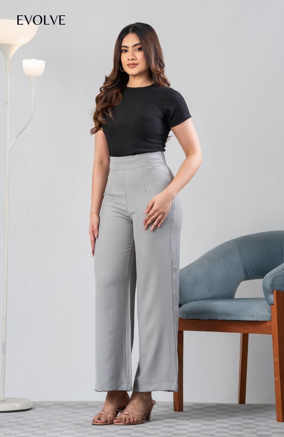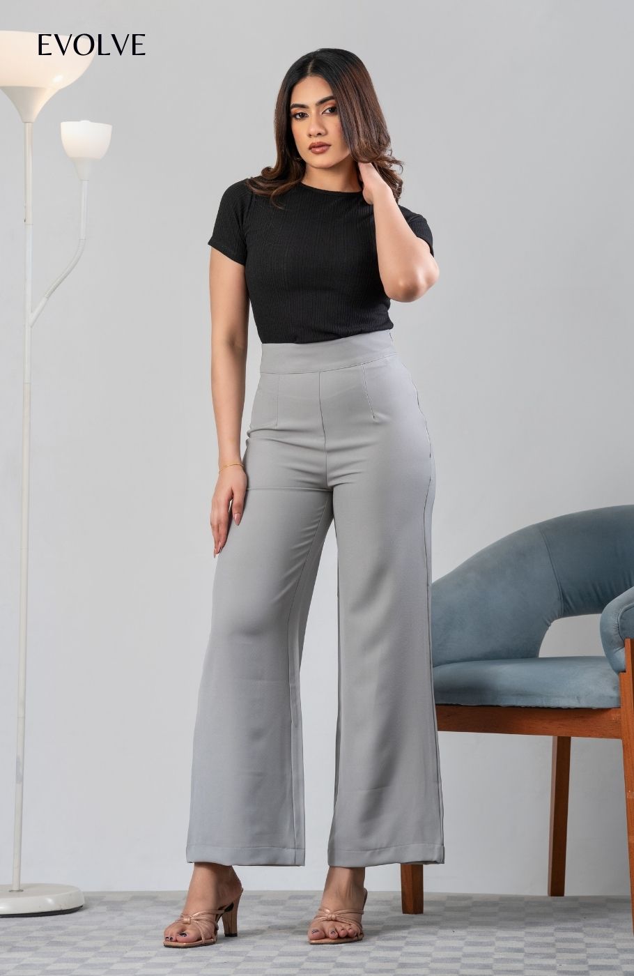 Have all the confidence you need with the EVOLVE High-Waisted Cairo Pants! Lightweight woven fabric shapes a boss-babe, high banded waist with a hi dden side zip. Wide pant legs fall to ankle.