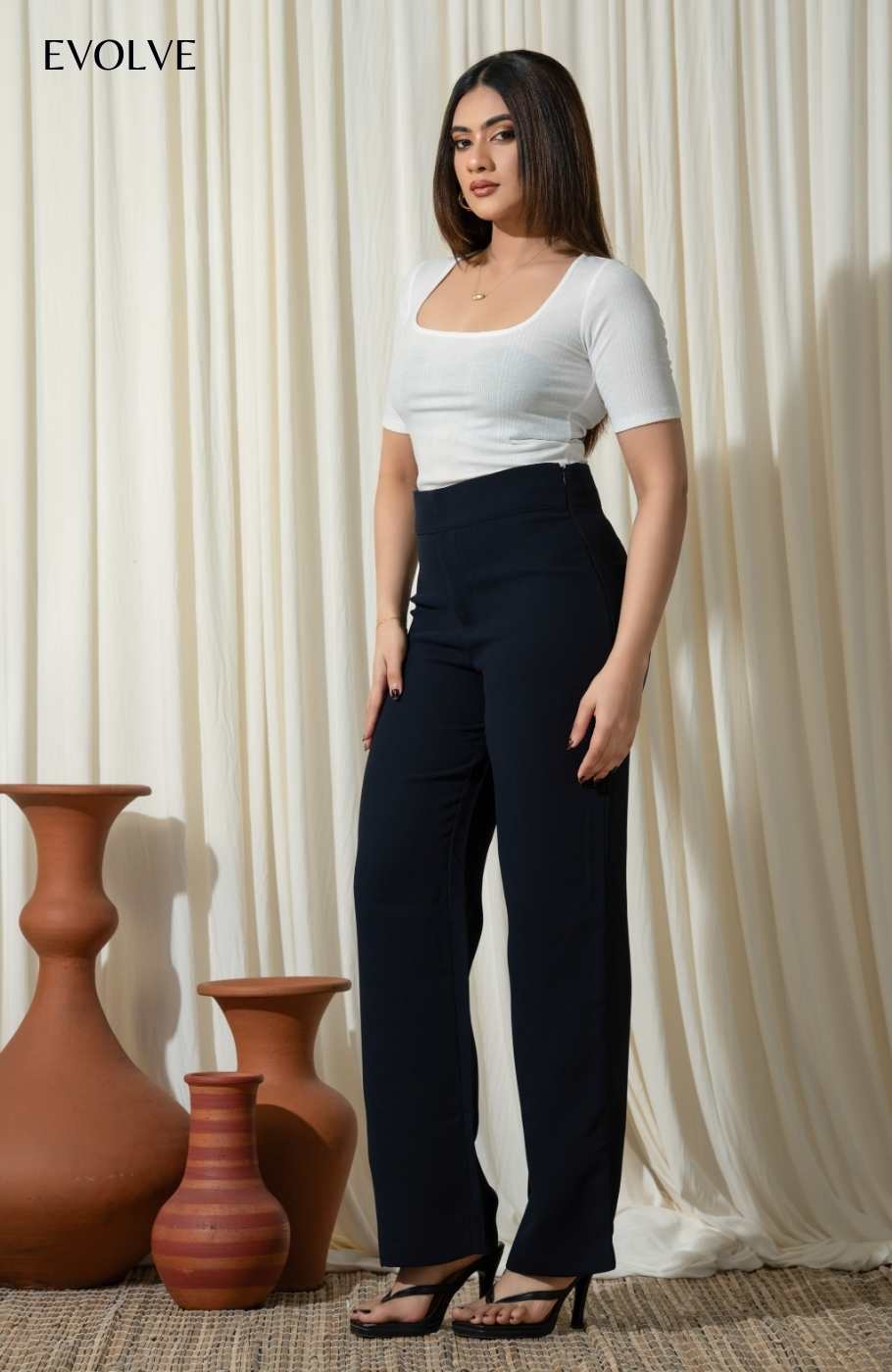 Get down to business with the Camden High-Waisted Straight-Leg Pants! Polyester woven fabric shapes these pants with a high-rise waist, mock fly, straight legs and side zipper.Fabric - 100% Polyester