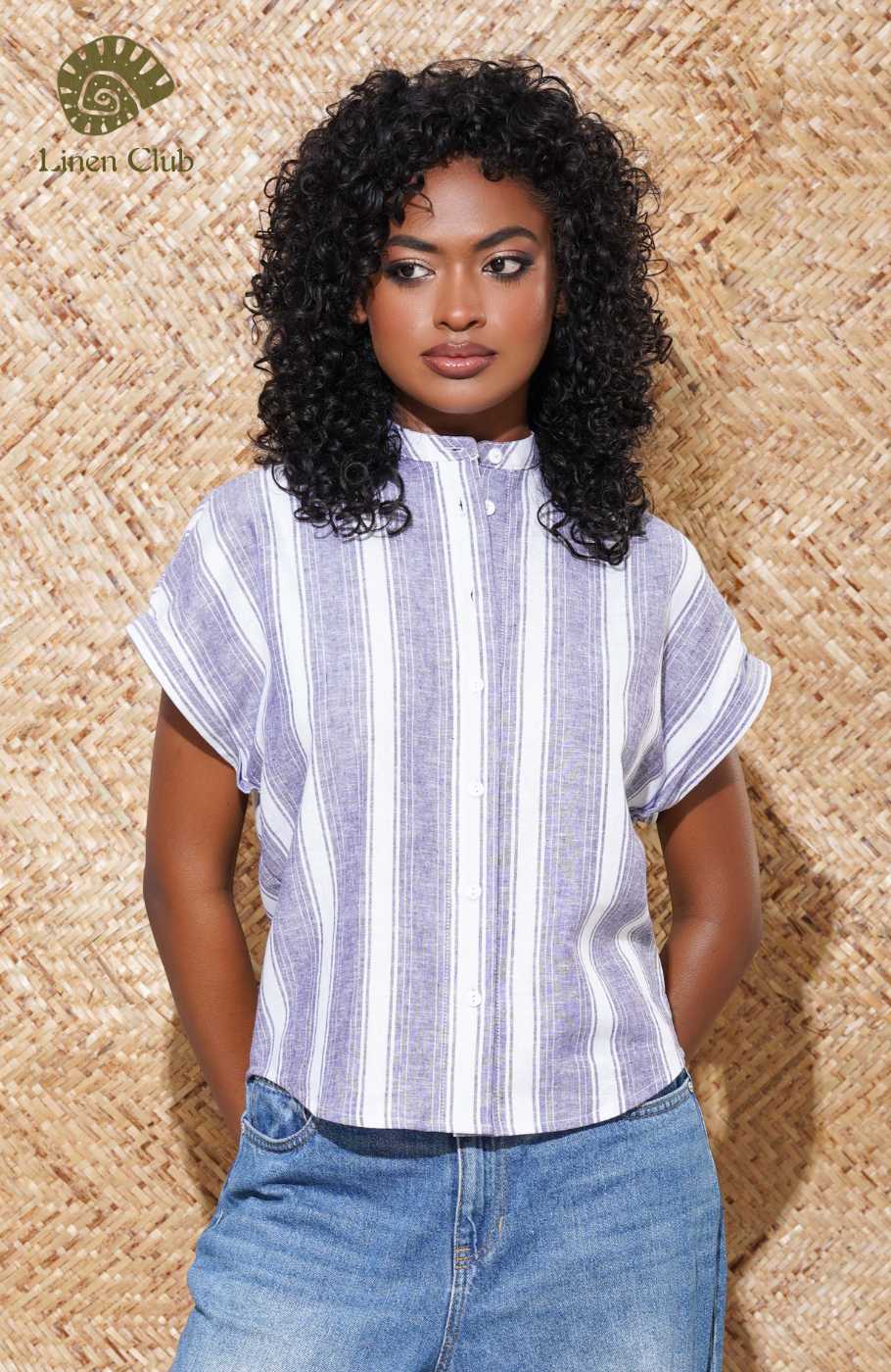 Keep it cute and classic in the EVOLVE Delia Short Sleeve Button-Up Top! Soft, premium linen fabric, creates a manderine collared neckline, and cuffed, short sleeves. Relaxed bodice features a full button placket and front patch pocket. Pair with denim and a blazer for a casual-chic workday look!