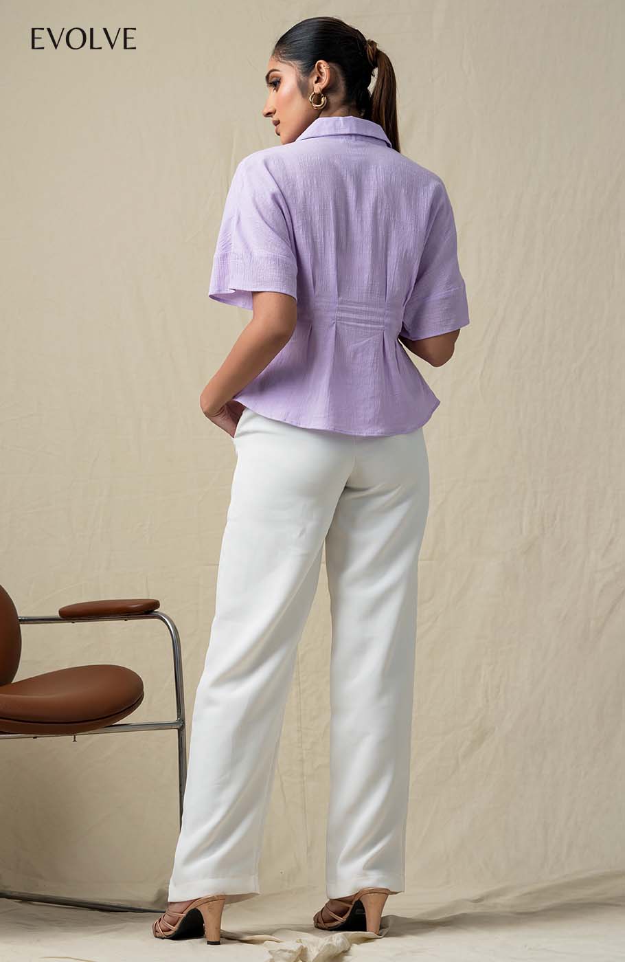 A refined essential for your everyday wardrobe — this bust-darted top is tailored for a clean, flattering fit. Designed with short sleeves and a structured silhouette, it blends comfort with sophistication, making it perfect for work or smart-casual settings.