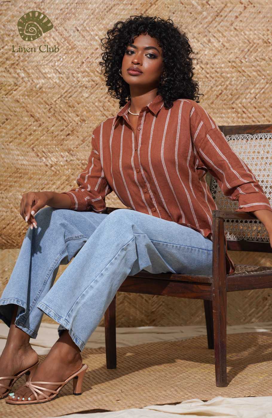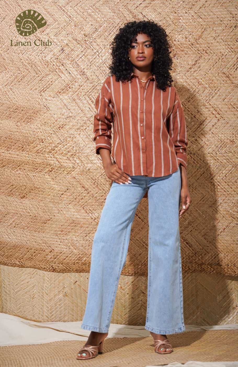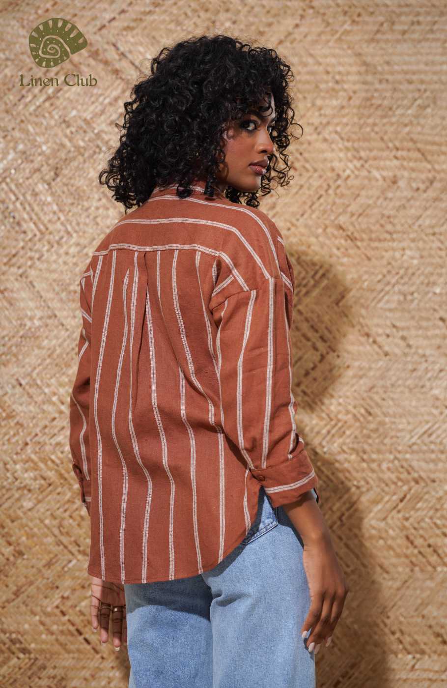 This breezy white shirt has tripes, collared neckline and long sleeves. Button Placket travel down the bodice.Fabric - 100% Linen