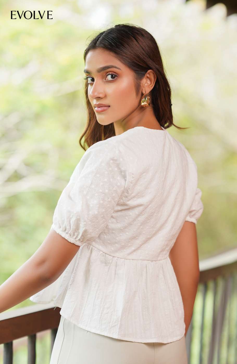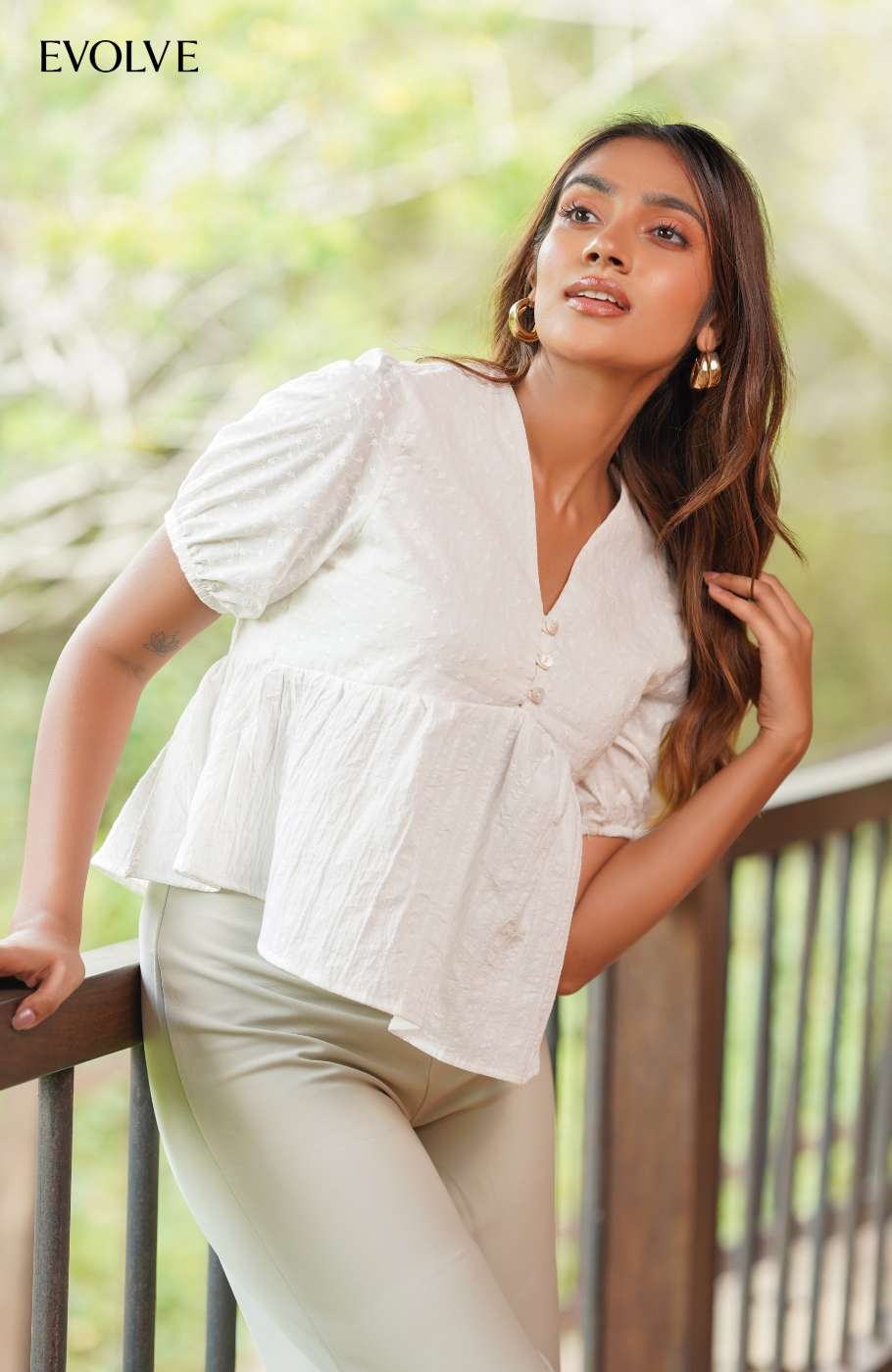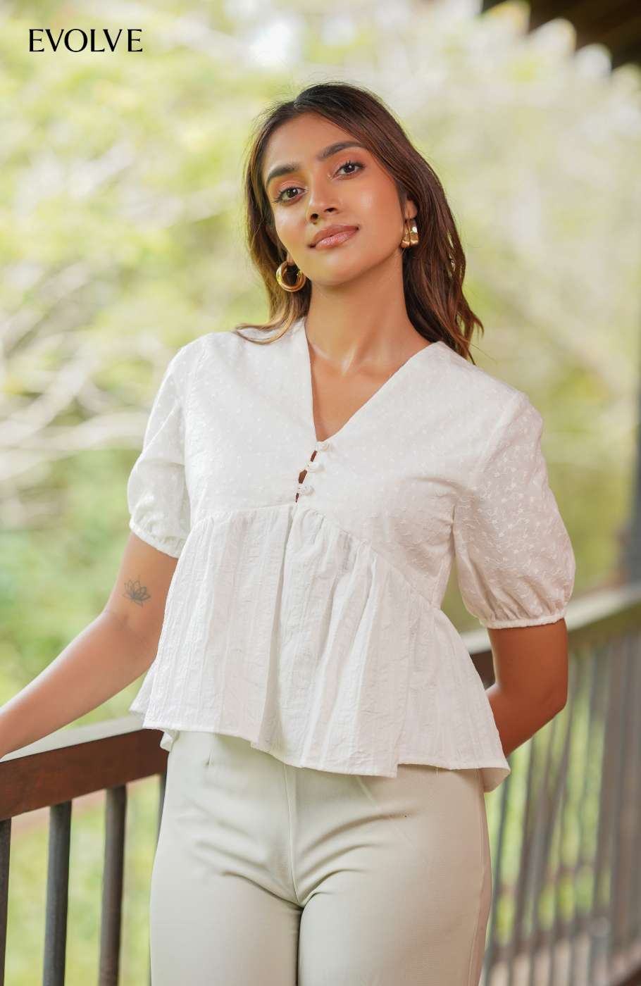 Show off your sweet side in the Levi White Linen + Cutlon Short Sleeve Button-Up Top! Crisp, lightweight woven linen shapes this perfectly adorable top that has puff style sleeves (with elastic at the cuffs) and a cutlon-lined V-neckline. Seamed, gathered cups create a bustier-inspired silhouette. Functional loop-button placket secures at the front to complete the look.