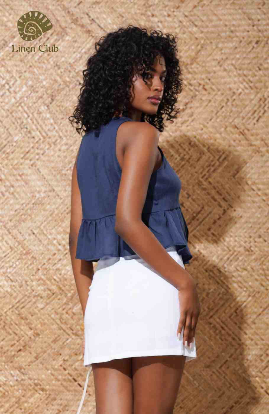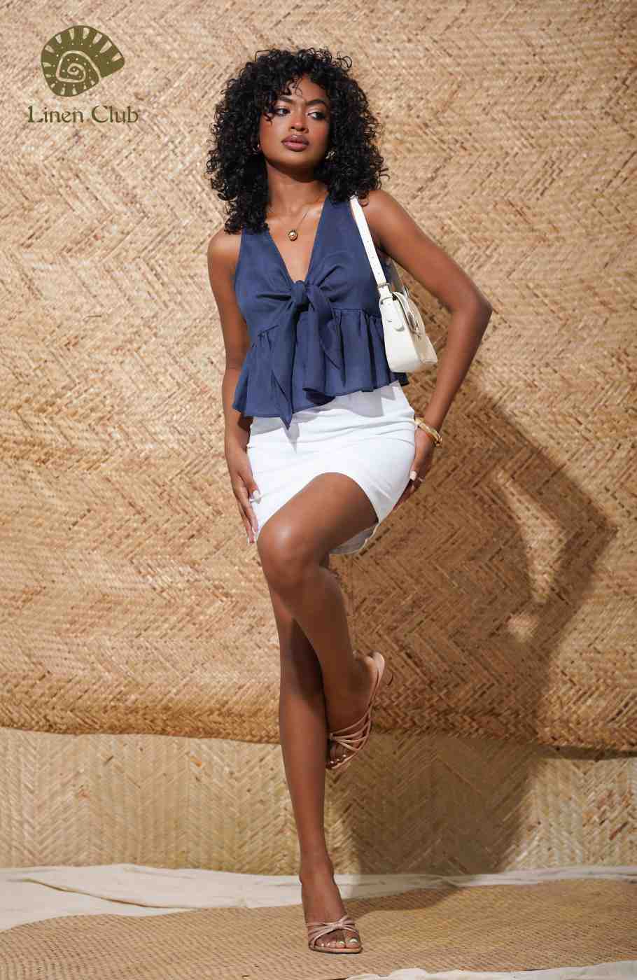 Featuring a flattering V-neckline and a delicate knot detail at the front, this gathered waist top flows into a soft peplum silhouette for an effortlessly elegant look.