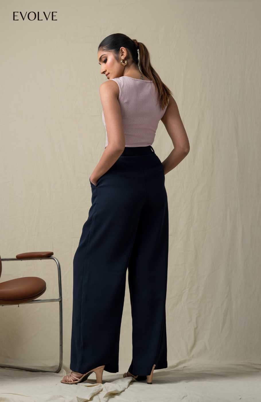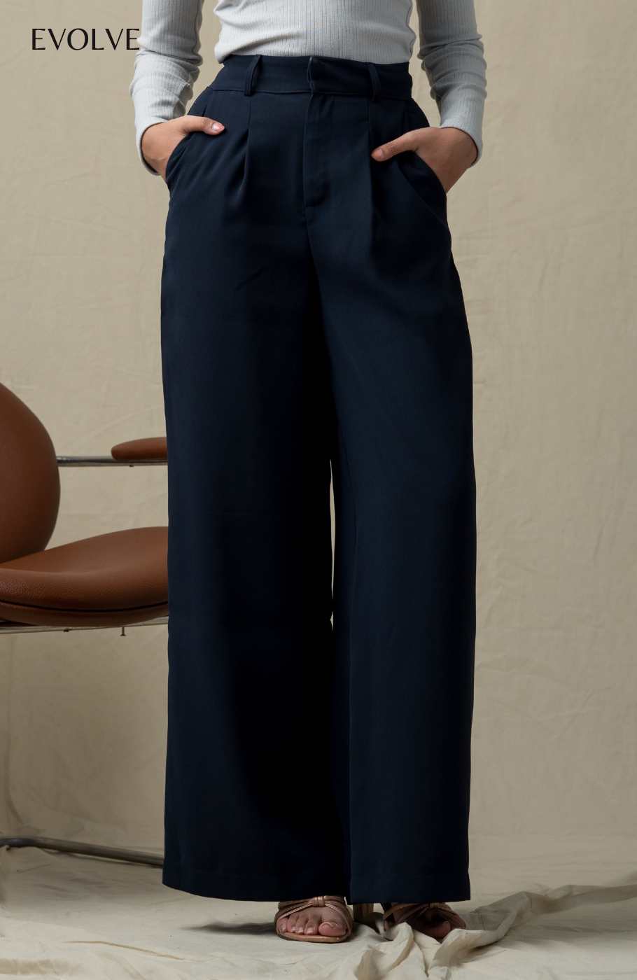 Tailored for effortless sophistication, the Lovine Pant features a wide-leg silhouette with soft pleats, side pockets, and belt loops. Perfect for polished office looks that transition seamlessly into after-hours style.Fabric - 100% Polyester