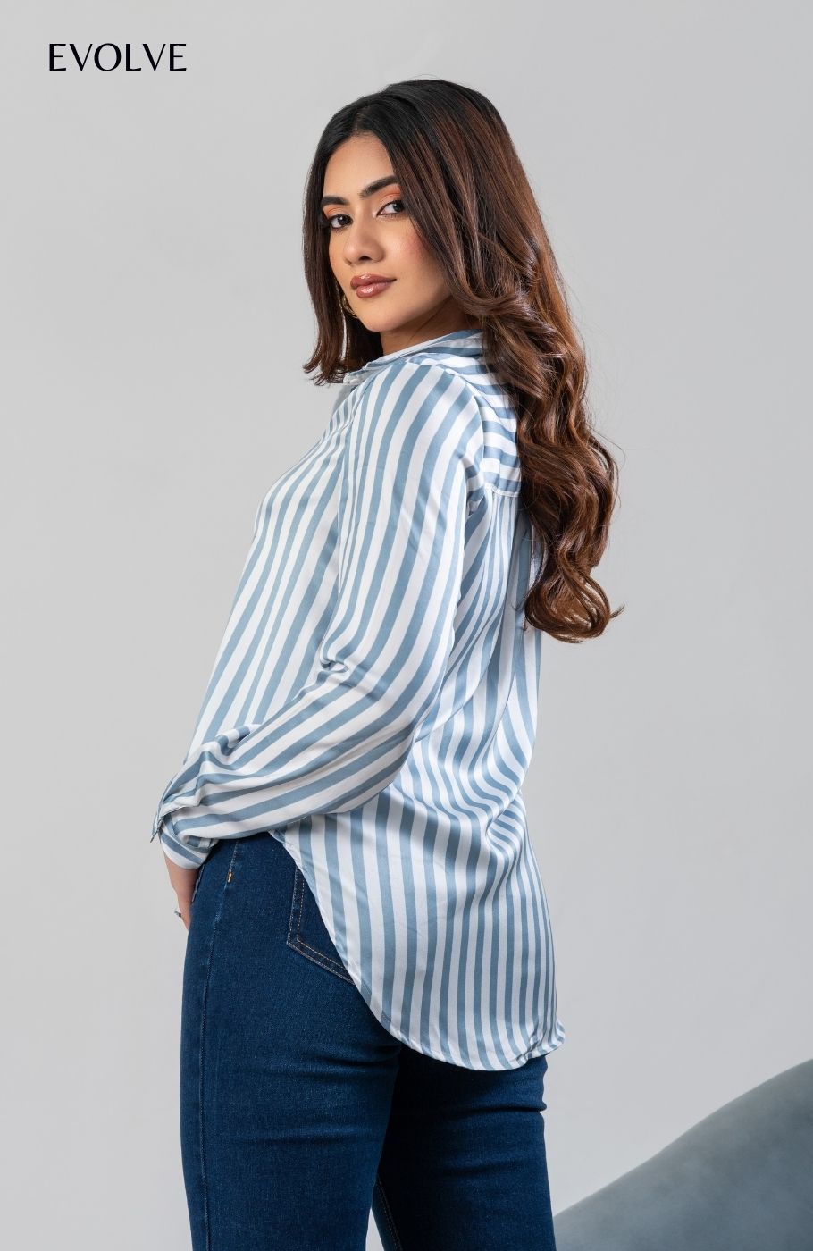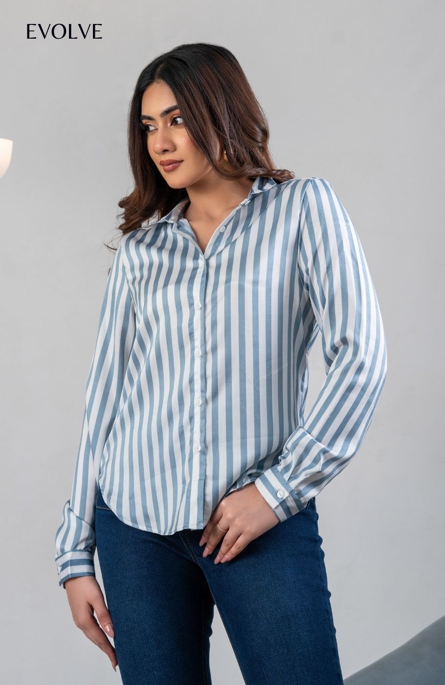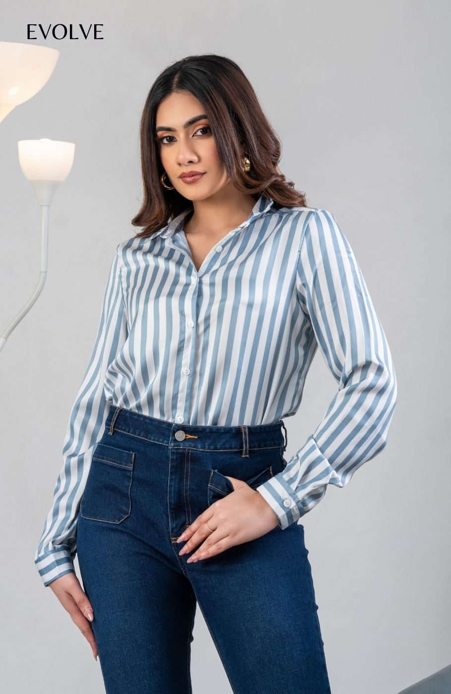 LUCCA SHIRT - SATIN BLUE STRIPES