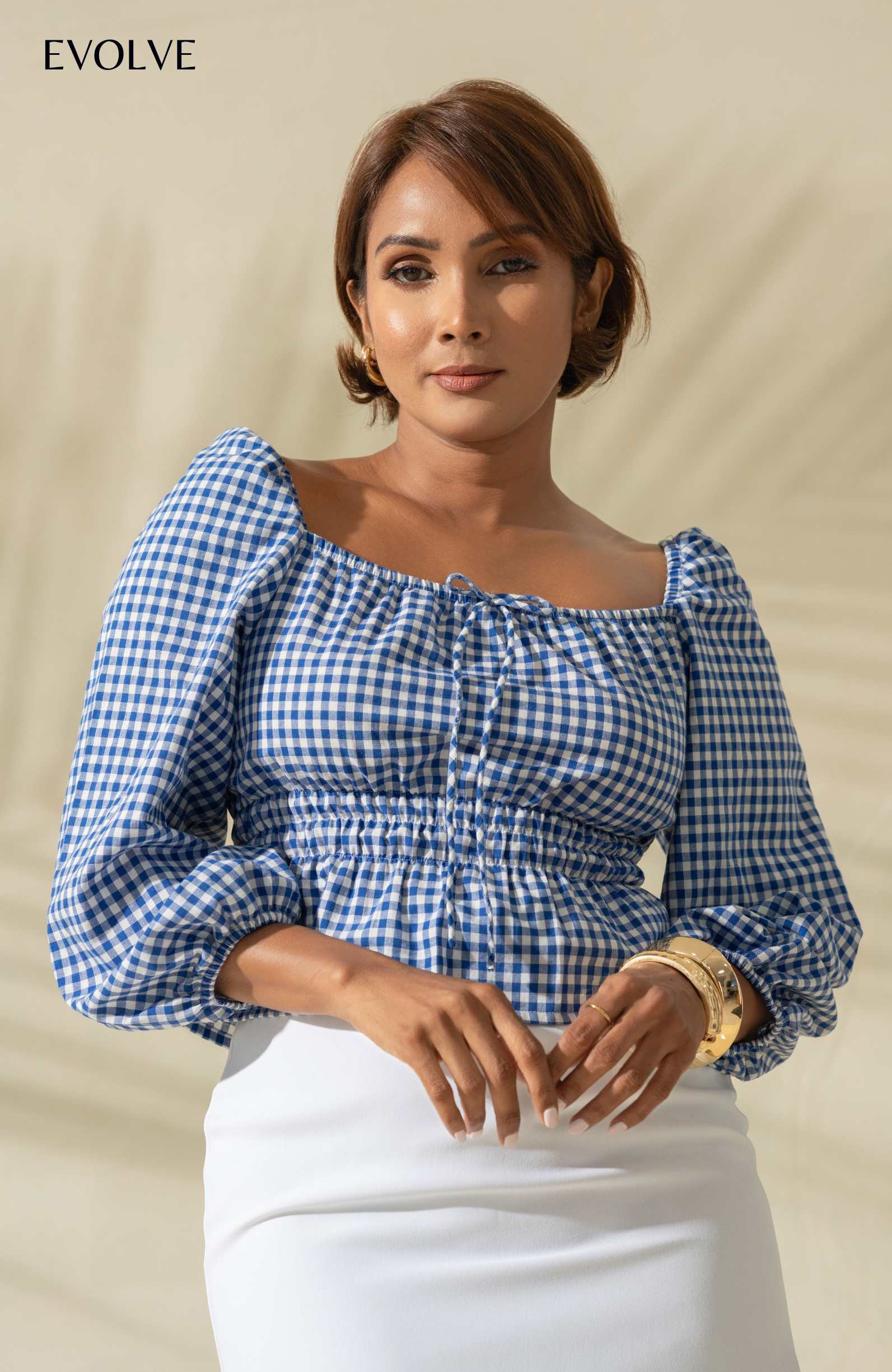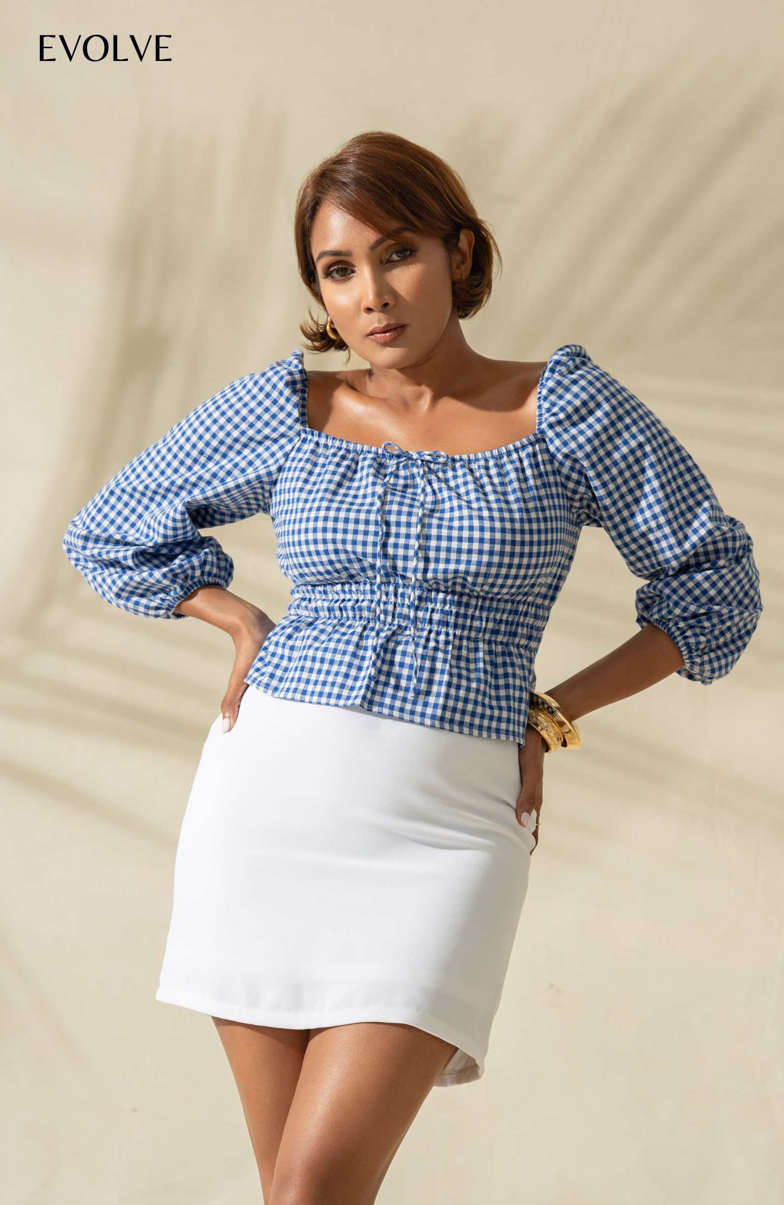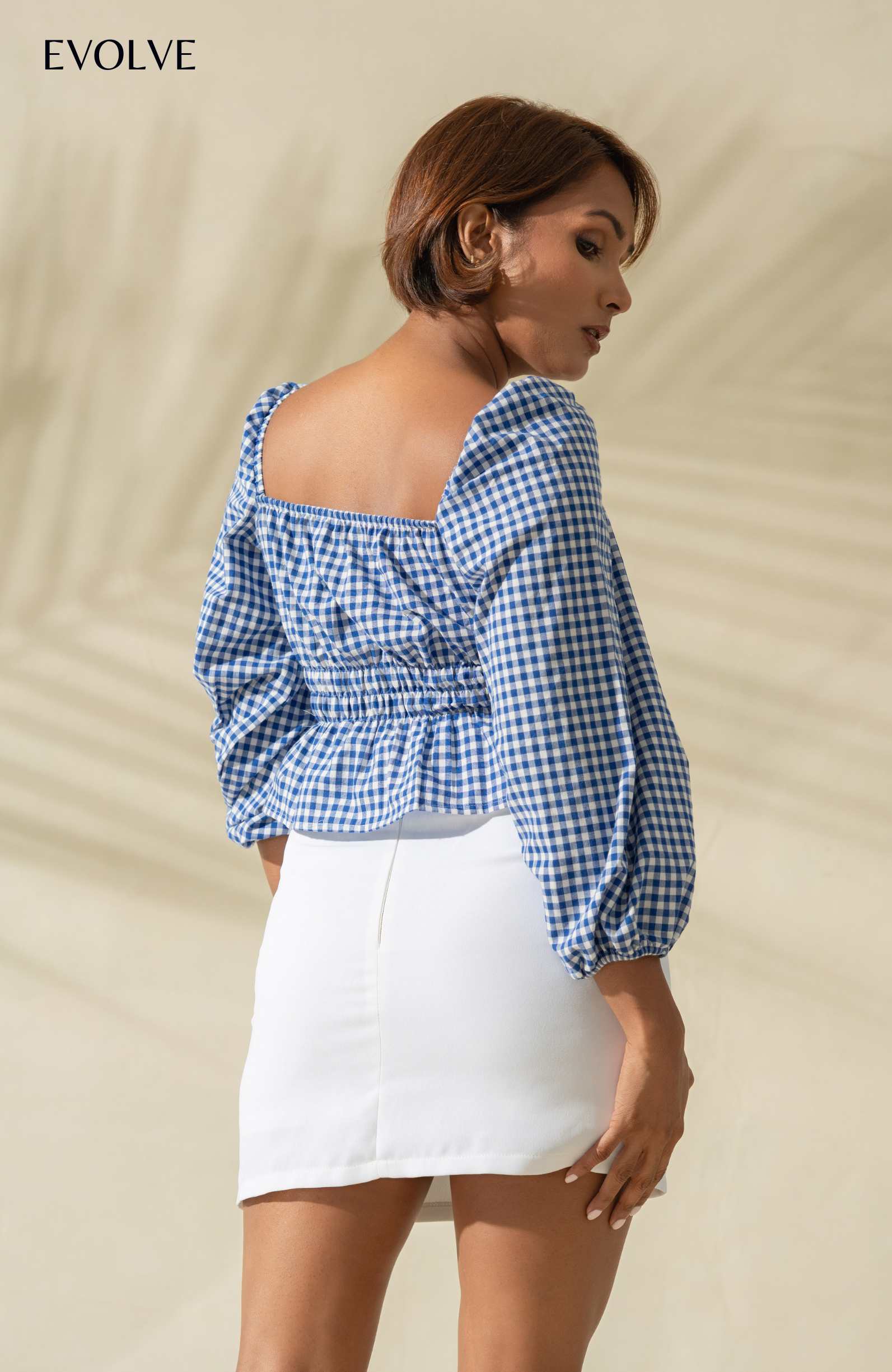 Show off your sweet side in the Hani linen , short Sleeve Button-Up Top! Crisp, lightweight Cotton shapes this perfectly adorable top that has puff style sleeves (with elastic at the cuffs) with front tie detail . Seamed, gathered cups create a bustier-inspired silhouette.