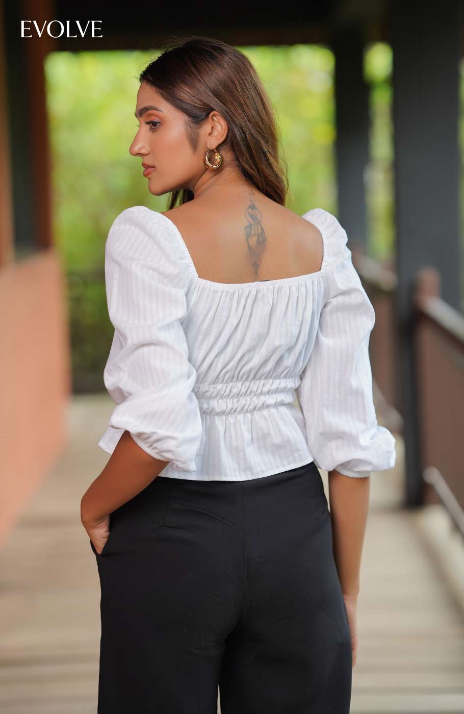 With the Miami Top and your shining smile, everyone will be dazzled as you pass by! Woven cotton fabric shapes a square-neckline and a elasticated waist. Cropped bodice ends with a frill hem.Fabrication - 100% Cotton