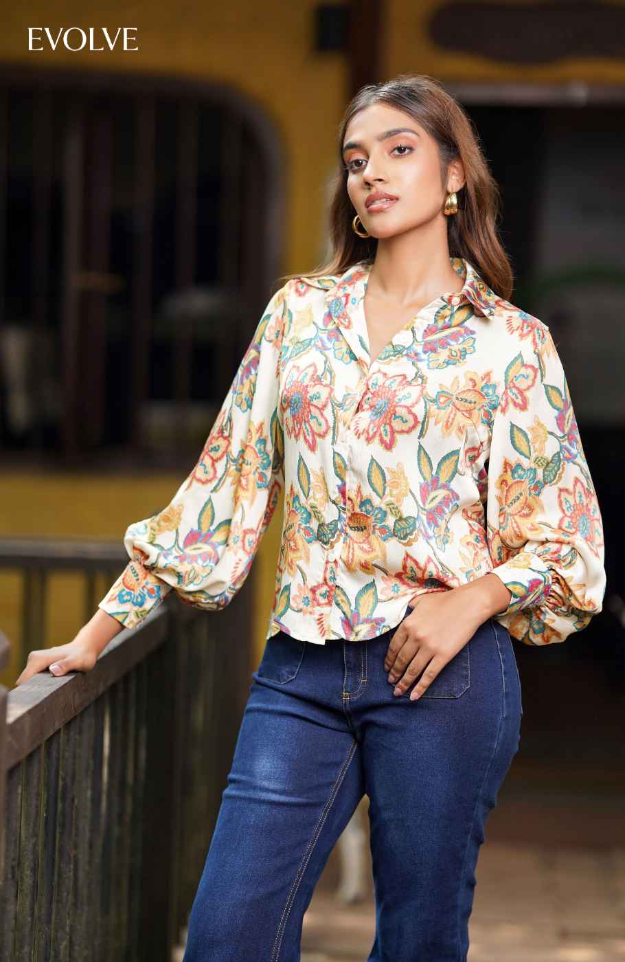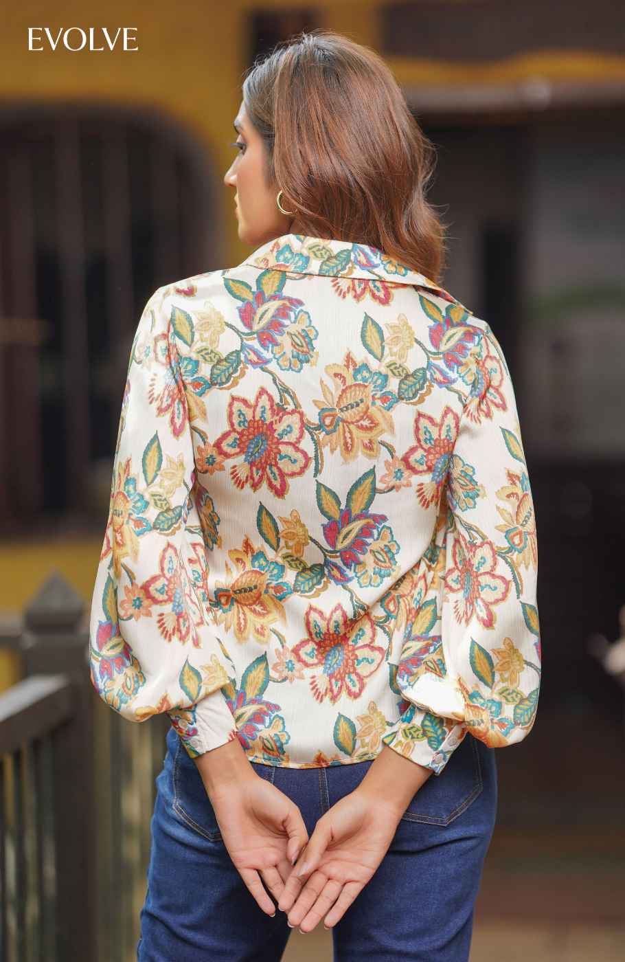 Lightweight woven fabric shapes this chic and simple top that has long balloon sleeves (with dramatic cuffs ) and a collared neckline. Functional button placket at front runs down to a full length hem that tucks perfectly into all your favorite skirts and pants!