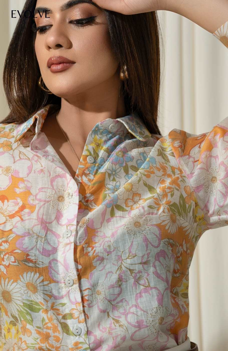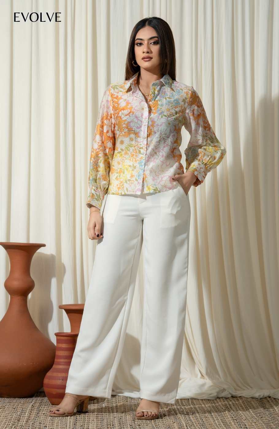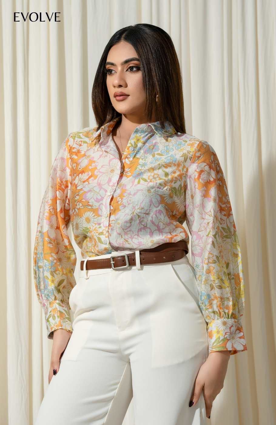 Lightweight woven fabric shapes this chic and simple top that has long balloon sleeves (with dramatic cuffs ) and a collared neckline. Functional button placket at front runs down to a full length hem that tucks perfectly into all your favorite skirts and pants!