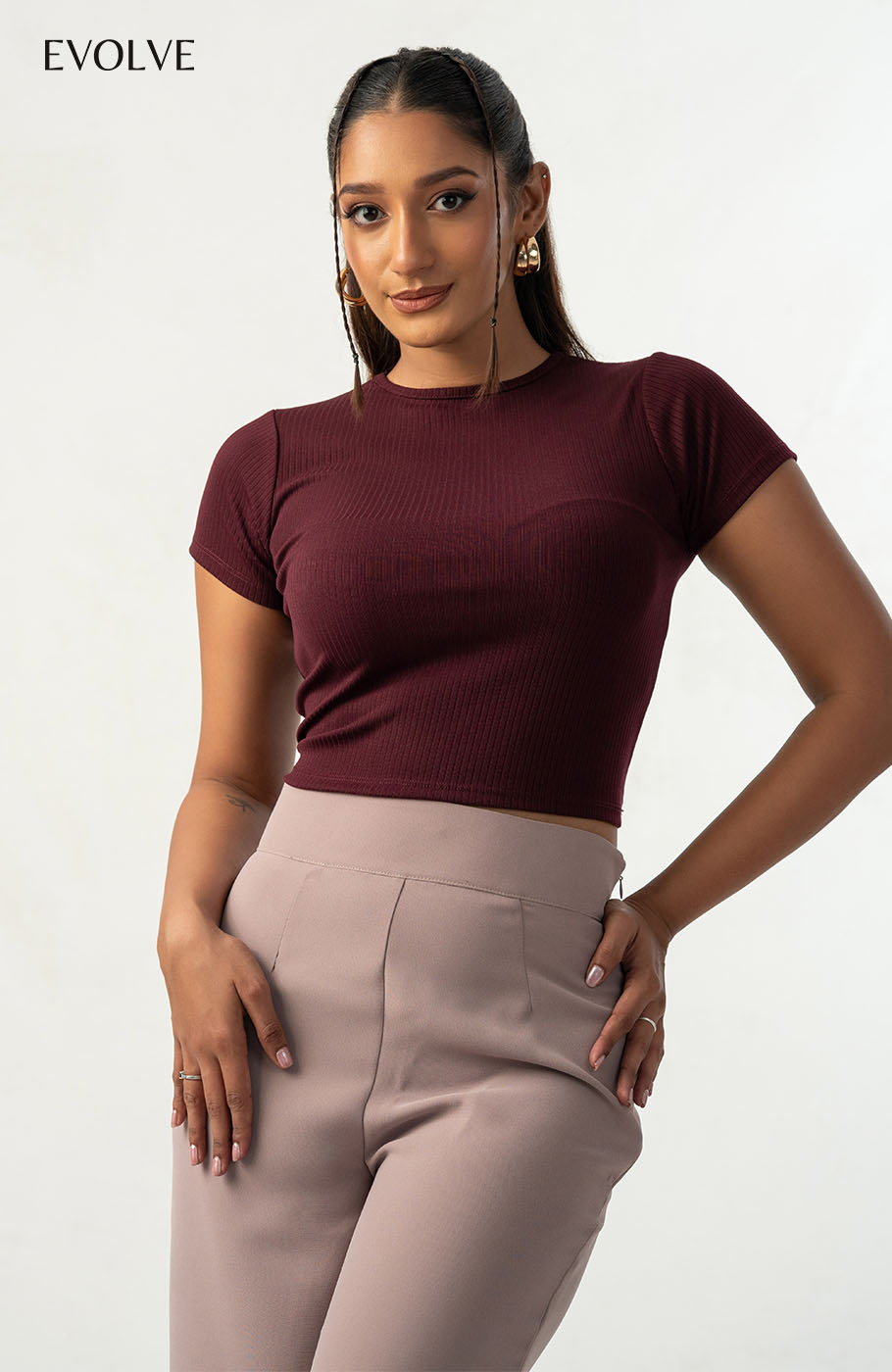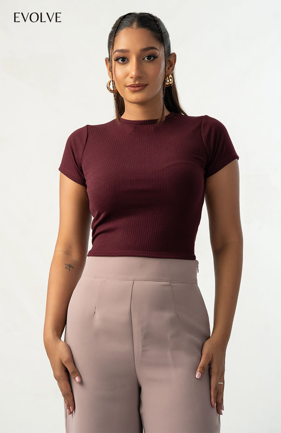 Stretchy ribbed knit shapes this versatile top that features a casual crew neckline and fitted bodice, framed by short sleeves that are sure to keep you cool through the season. However you decide to style this top, you're sure to always look trendy!