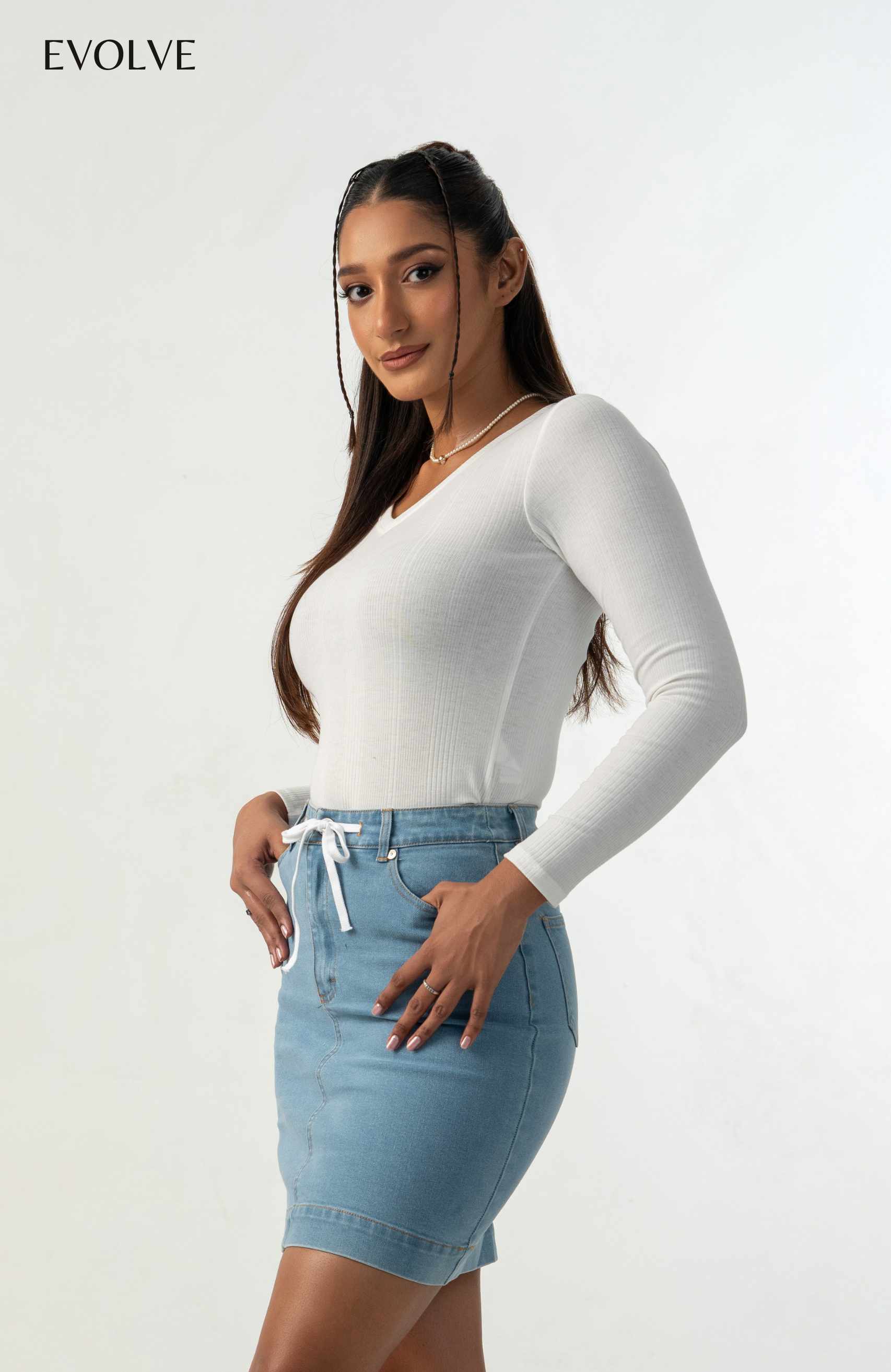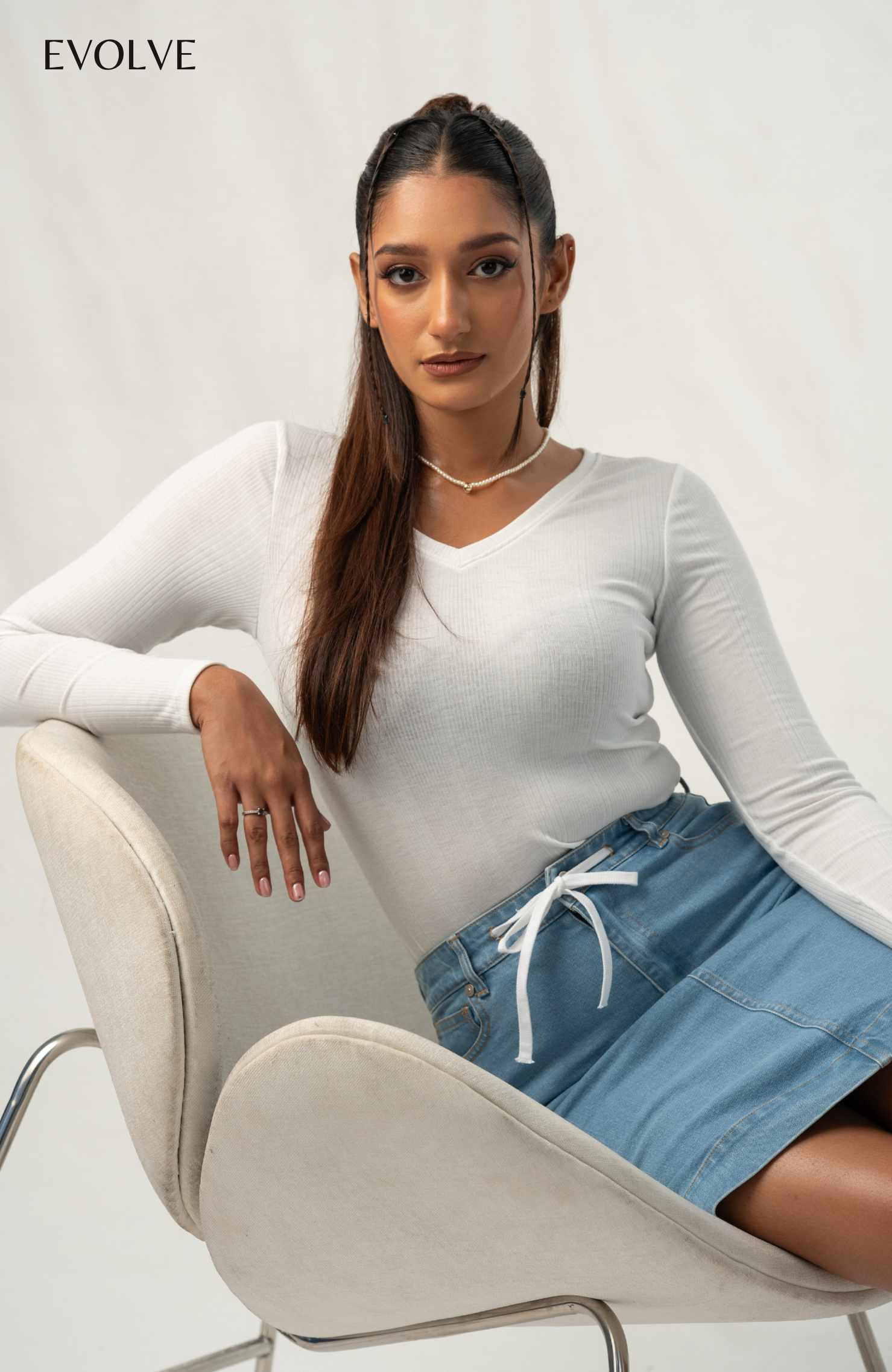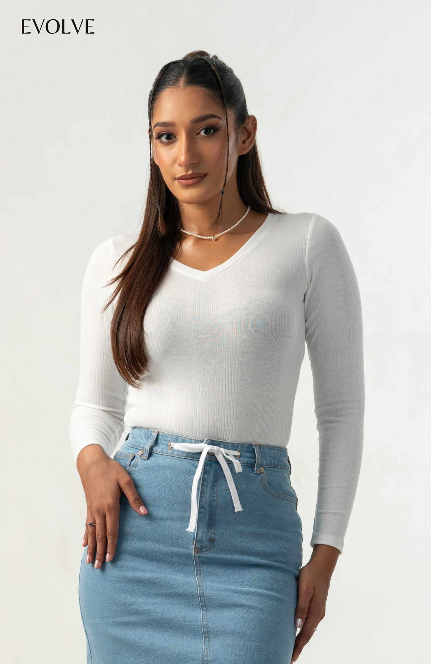 Take your everyday pants-and-tee look up a notch with the REBA V-Neck Long Sleeve Tee! Soft and stretchy ribbed knit shapes this wardrobe-required tee with a classic V-neckline, long sleeves, and a fitted bodice. Pair with comfy pants and sandals for a cute and effortless look!