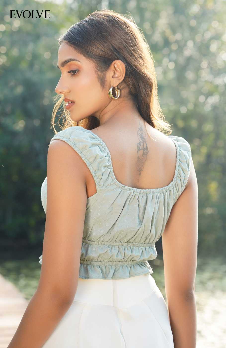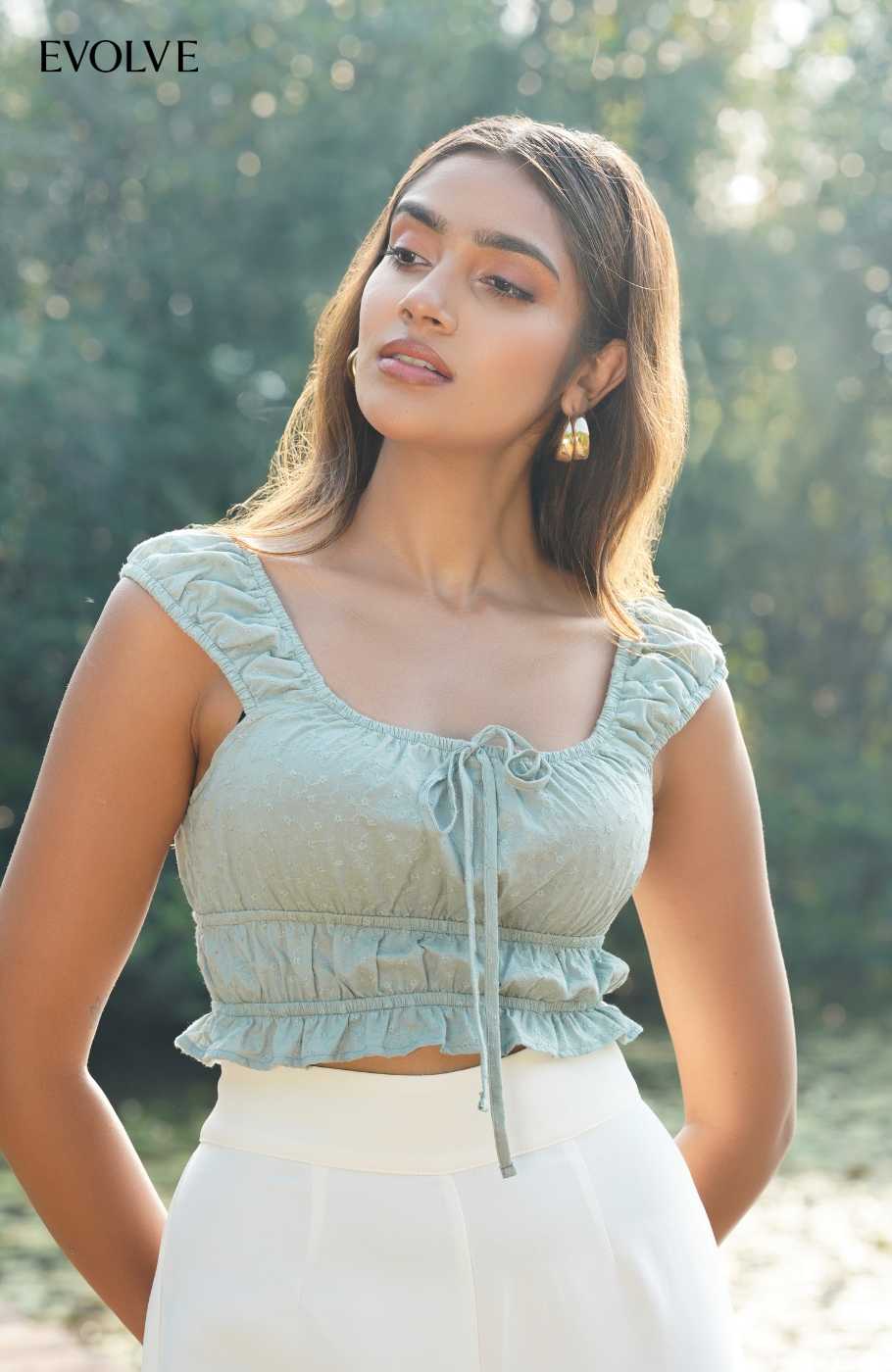 Round neck elasticated crop top in delicate broderie fabricLight, breathable, and designed for all-day comfort. A cute and easy piece for warm days.Fabric - 100% Cotton