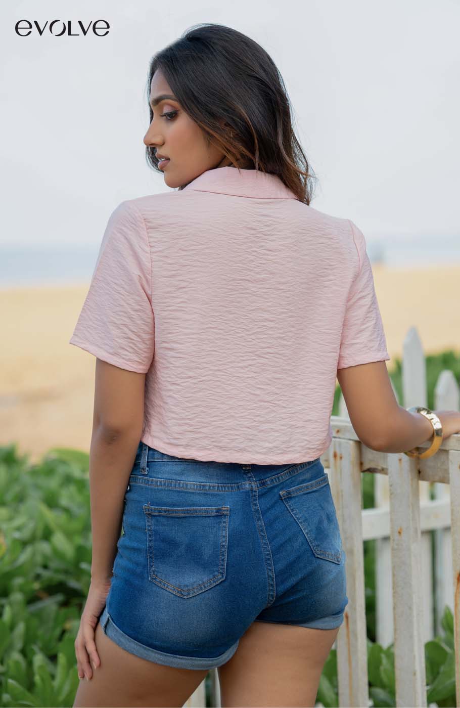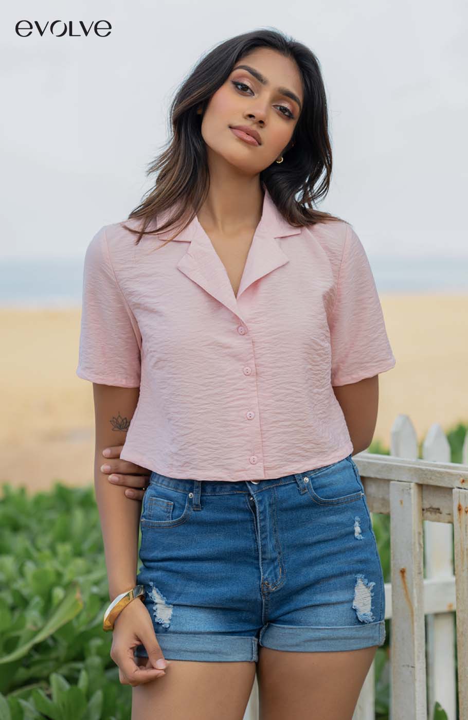 Your everyday wardrobe just isn't complete until it has the Evolve Easily Perfect camp collar neck , short Sleeve Button-Up cropped shirt! Airy Linen fabric shapes this breezy and versatile top.