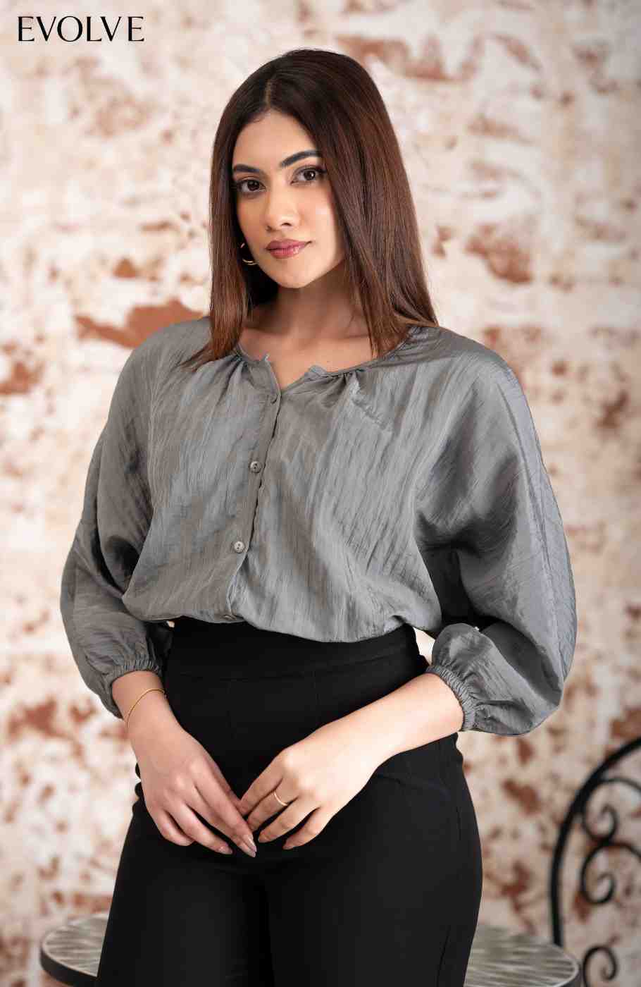 The Avalon dolman sleeve, Button-Front Top will always leave you feeling best dressed and never stressed! Lightweight, crepe woven fabric shapes this on-trend top with a flattering notch-neckline and loose fit bodice.