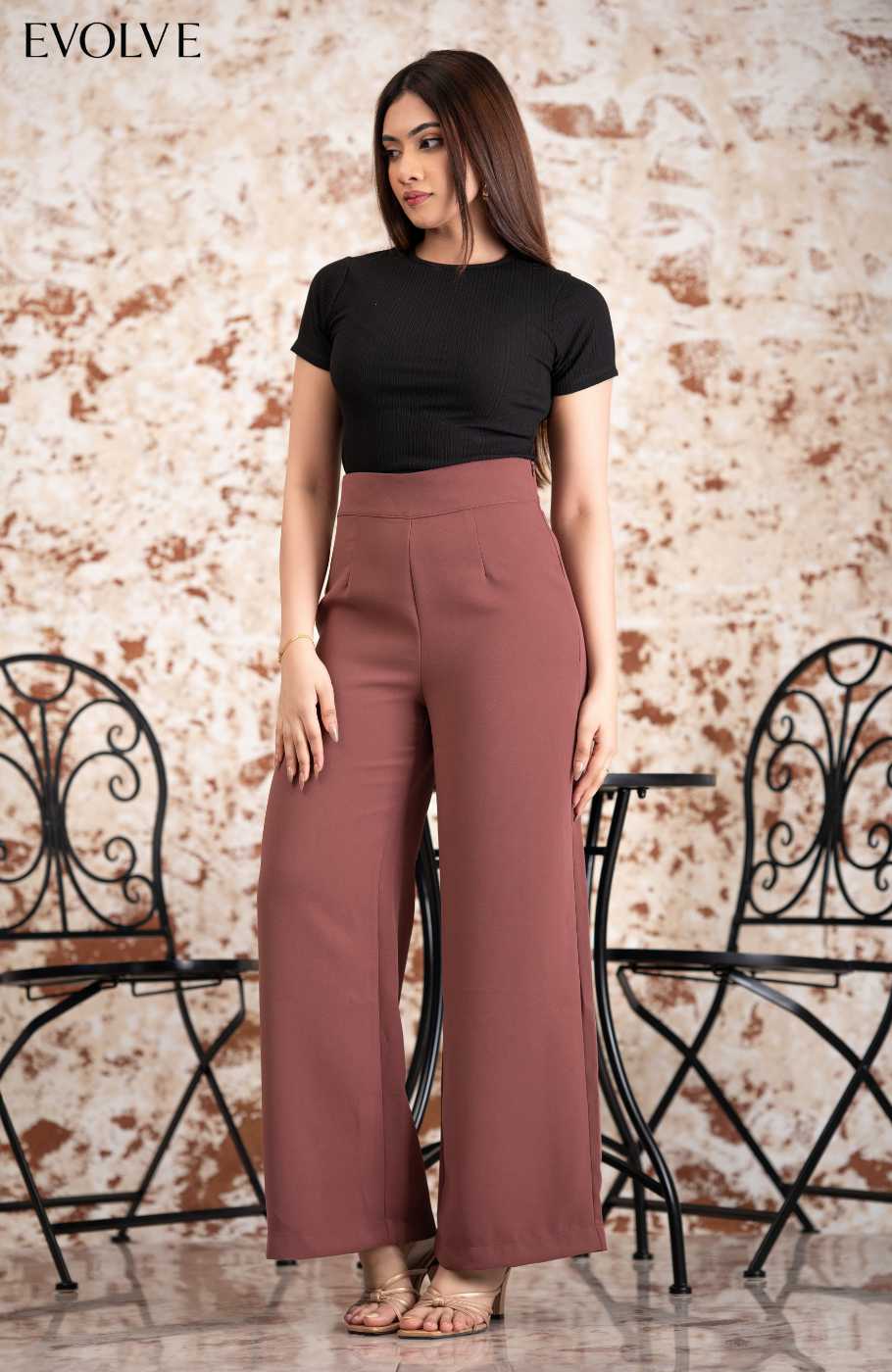 Have all the confidence you need with the EVOLVE High-Waisted Cairo Pants! Lightweight woven fabric shapes a boss-babe, high banded waist with a hi dden side zip. Wide pant legs fall to ankle.