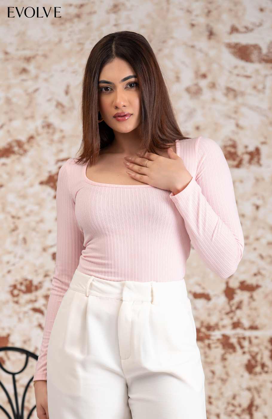 The CORA Top is a must-have top that never goes out of style! This ultra-versatile top has a soft and stretchy ribbed knit composition that shapes a deep square neckline framed by fitted long sleeves