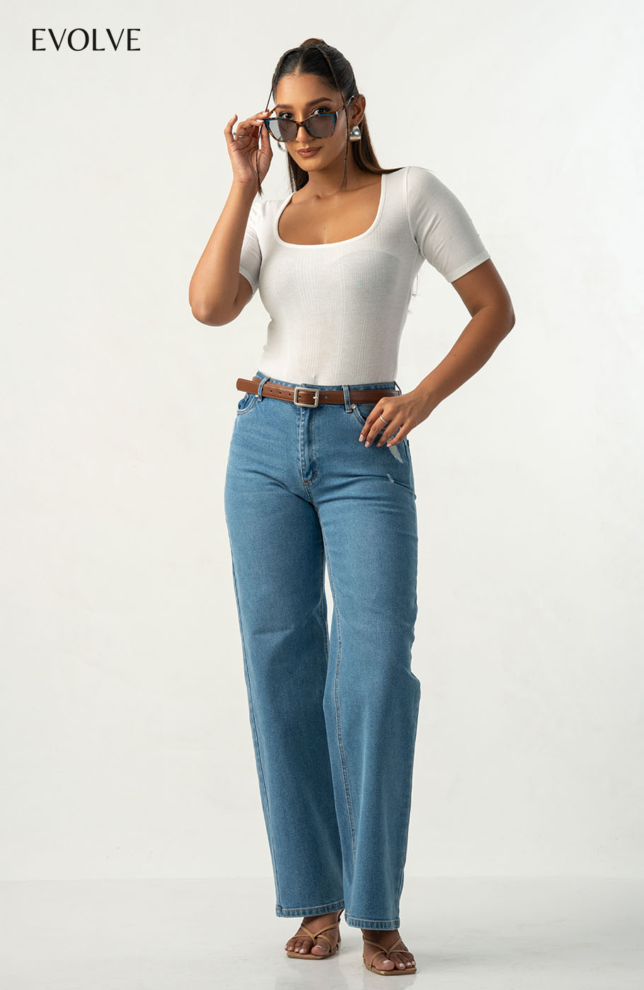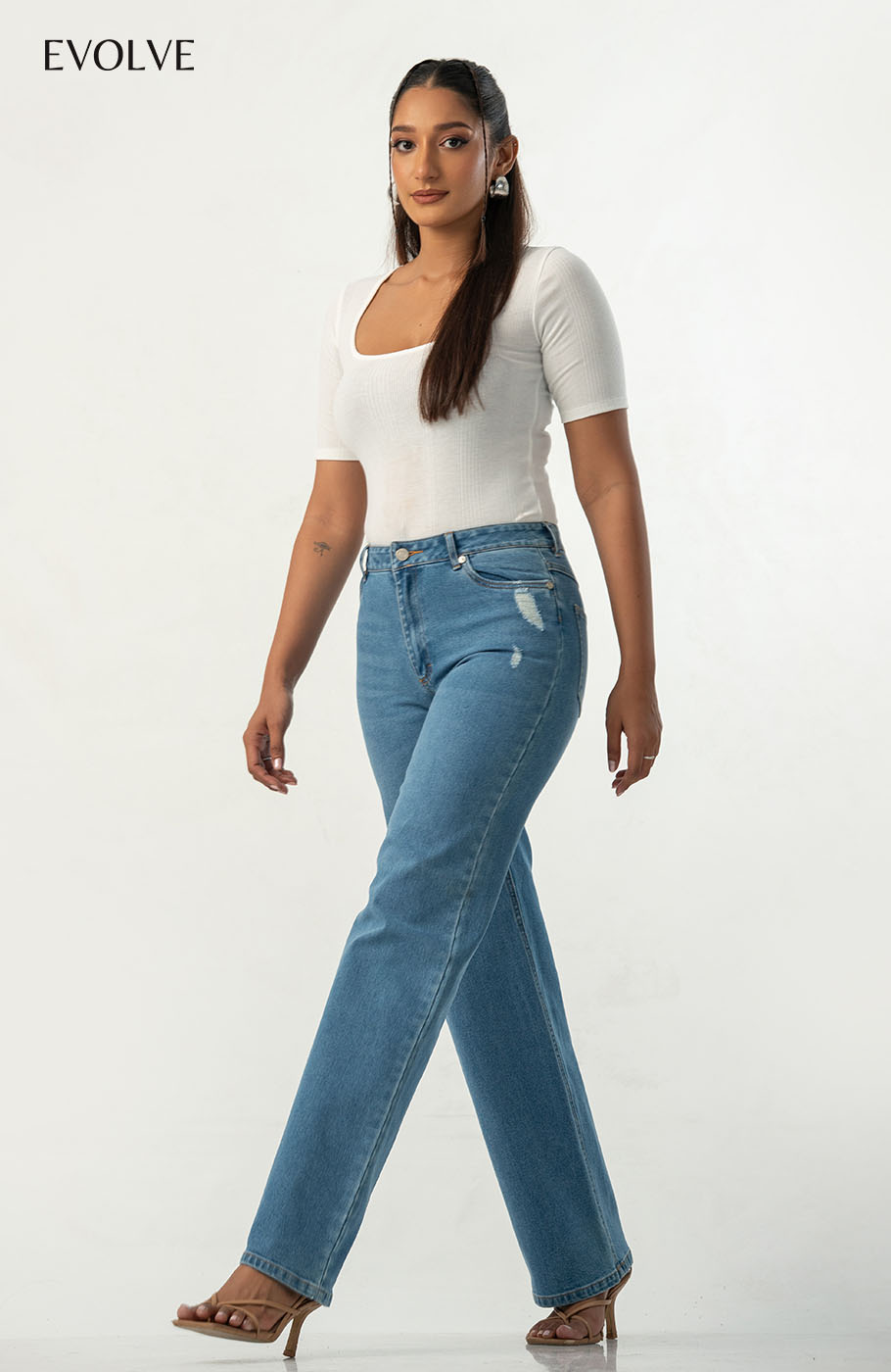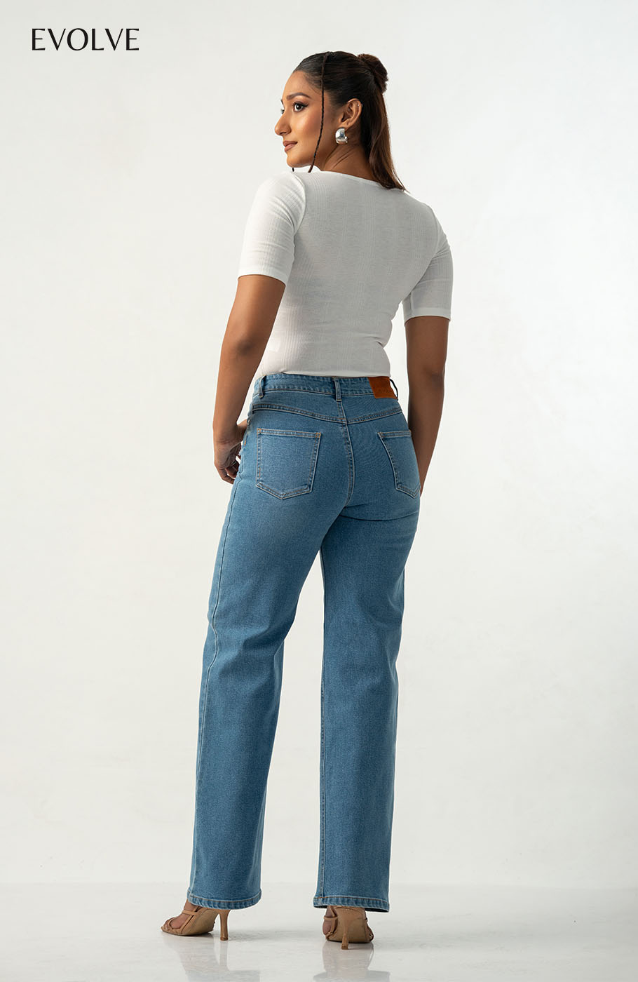 High-waisted straight-leg jeans in our signature moon wash. Crafted for a flattering fit with a timeless silhouette — your go-to pair for effortless, everyday style.Fabric - Denim - 80% Cotton 18.5% Polyester 1.5% Spandex