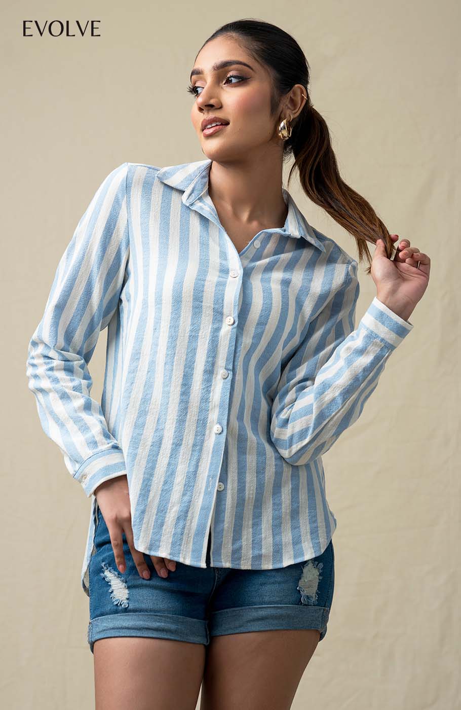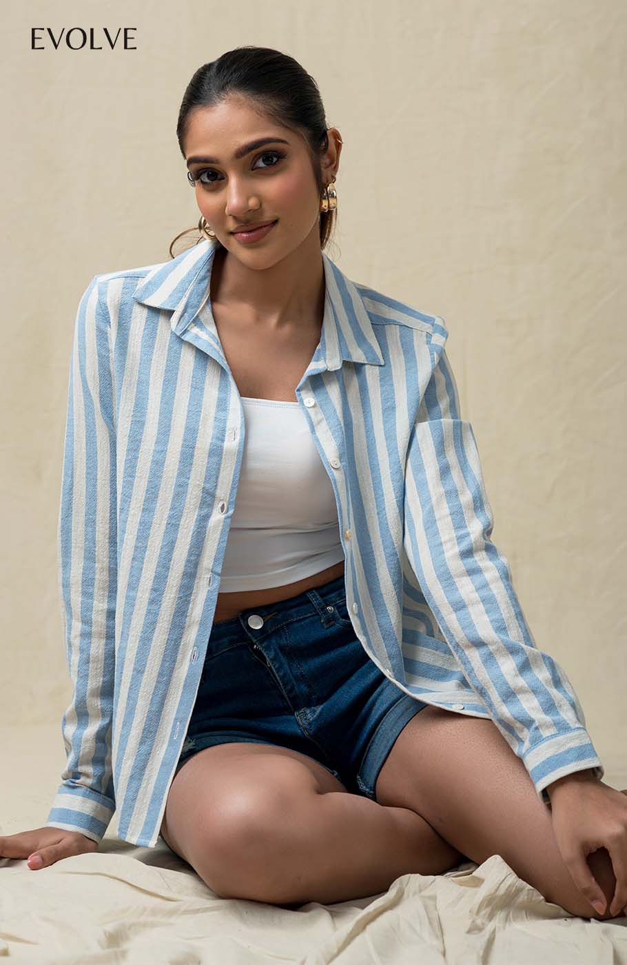 DERBY CROPPED SHIRT - COBALT BLUE STRIPES