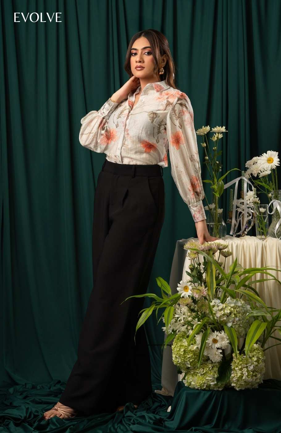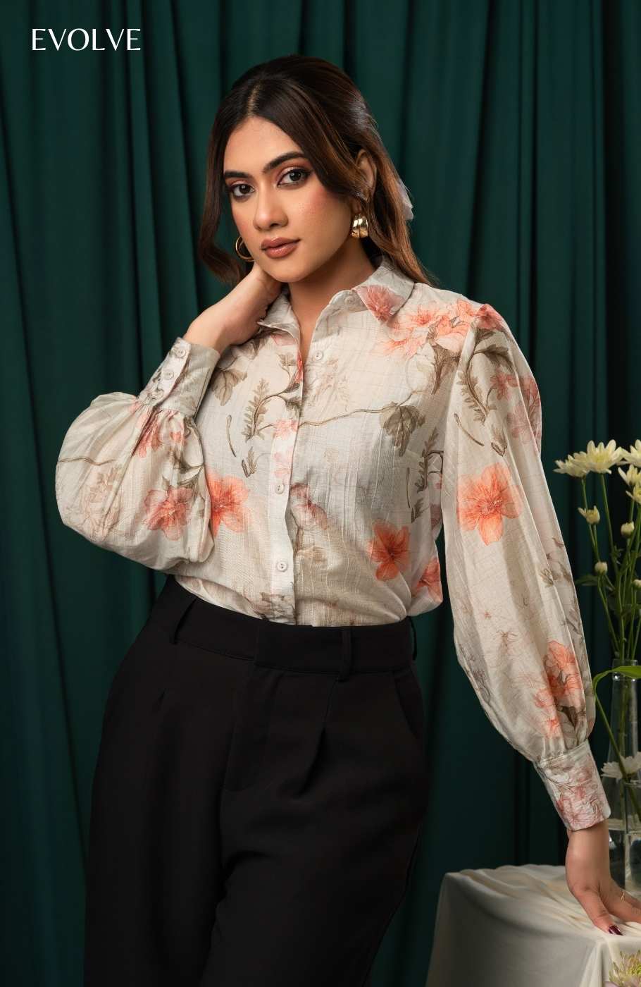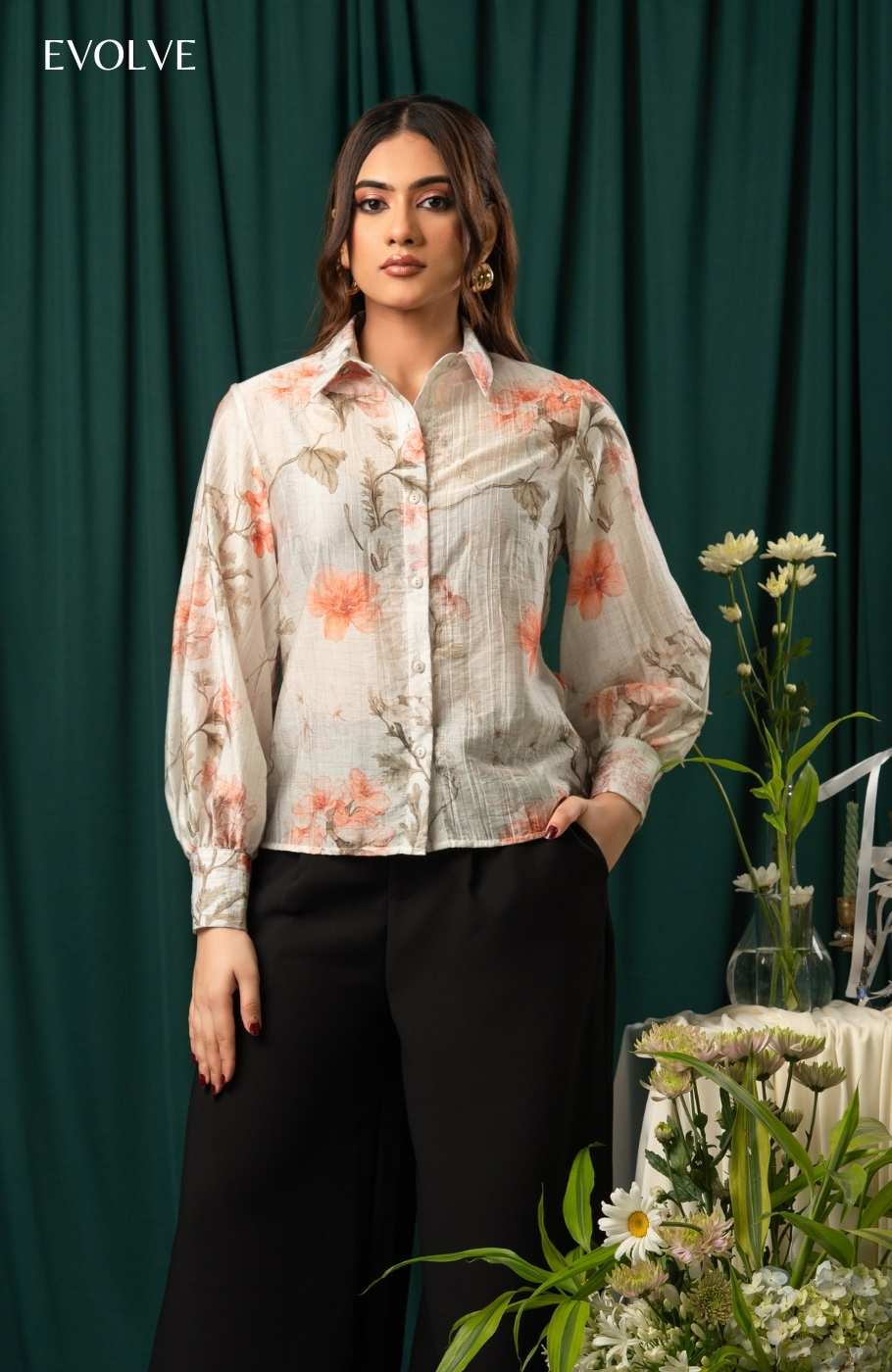 Lightweight woven fabric shapes this chic and simple top that has long balloon sleeves (with dramatic cuffs ) and a collared neckline. Functional button placket at front runs down to a full length hem that tucks perfectly into all your favorite skirts and pants!